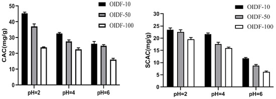 The effect of different particle sizes of OIDF on the adsorption of cholesterol (CAC) and sodium cholate (SCAC).