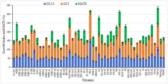 Four strains (4LBI-3, LL-1, P4 and TA4-10) showed the highest percentage of MATS (>75%).