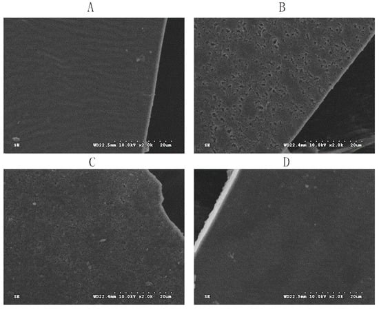 SEM of the surface (×2000) of CS (A), PA-g-CS-I (B), PA-g-CS-II (C), and PA-g-CS-III (D) films.