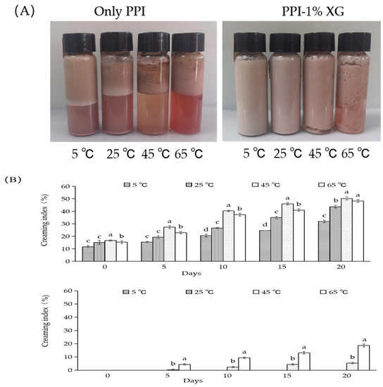 3.2. Effect of Different Temperatures on the Storage Stability of Double Emulsions