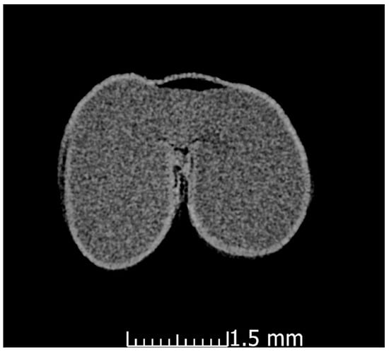 CT image of ‘Otilia’ cultivar wheat seed plasma-treated and swelling after PIXE measurement.