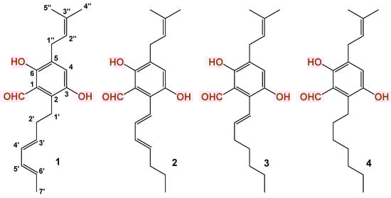 Compounds 3 and 4 were identified as tetrahydroauroglaucin and flavoglaucin, respectively, by comparison of molecular formula and NMR data (Table 1, Figures S7–S12) with reported data [].