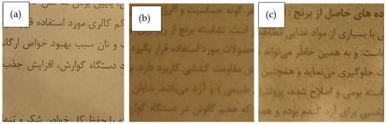 Appearance of (a) control modified BSG edible film and those incorporated with tannic acid and vitamin D3 in (b) encapsulated form in nanophytosome and (c) free form.