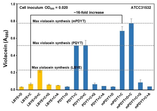 3.4. Violacein Production in ATCC31532 Was Increased by >10-Times in mPDYT