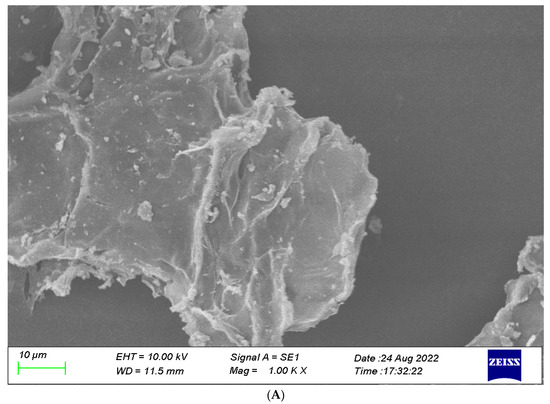 The dietary fiber (DF) microstructure determines its physiological function. A looser and more porous microstructure of DF would enhance WHC, WSC, and OHC. SEM analysis of E-DF illustrated its surface as compact and relatively smooth, with closely arranged fibrous matter and small fragments adhering to particle surfaces (Figure 2A). The surface of DES-DF was much rougher and irregular (Figure 2B). This structure increased the specific surface area of the particles, leading to an enhanced absorption capacity for water and oil. Similarly, the surface of US-DES-DF exhibited noticeable irregularities and multilayer structures with a high density of irregular filaments (Figure 2C), leading to an increased specific surface area that exposes more water-binding sites [47]. Cellulose and hemicellulose degradation resulted in cracks on the particle surface of US-DES-DF. Moreover, ultrasound treatment could degrade cellulose and hemicellulose [48], altering the structure, hydration, and absorption capacity of US-DES-DF. This observation is consistent with earlier research on orange-derived DFs, where ultrasonic treatment induced comparable structural modifications and elevated functional properties. Similarly, changes in structure were also witnessed in lemon fiber after ultrasound treatment [49].