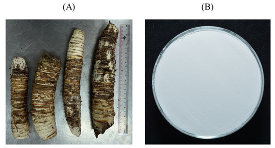 - Wongsagonsup, R.; Nateelerdpaisan, T.; Gross, C.; Suphantharika, M.; Belur, P.D.; Agoo, E.M.G.; Janairo, J.I.B. Physicochemical properties and in vitro digestibility of flours and starches from taro cultivated in different regions of Thailand. Int. J. Food Sci. Technol. 2021, 56, 2395–2406. [Google Scholar] [CrossRef]