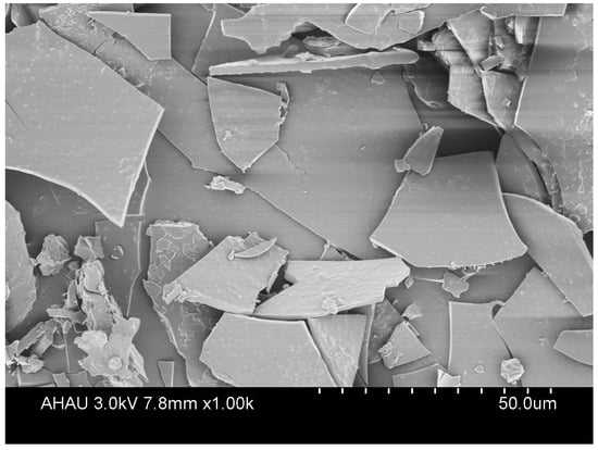A total of 5 g of sample was weighed, and we performed thermogravimetric analysis using a TGA Q600 (TA Instruments, New Castle, DE, USA), followed by scanning from 25 to 700 °C at a heating rate of 10 °C/min and a nitrogen flow rate of 50 mL/min. The test was performed using a NetzschSTA-449C instrument under the following conditions: a nitrogen atmosphere, temperature range of 25–500 °C, and temperature programmed rate of 15 °C/min [].