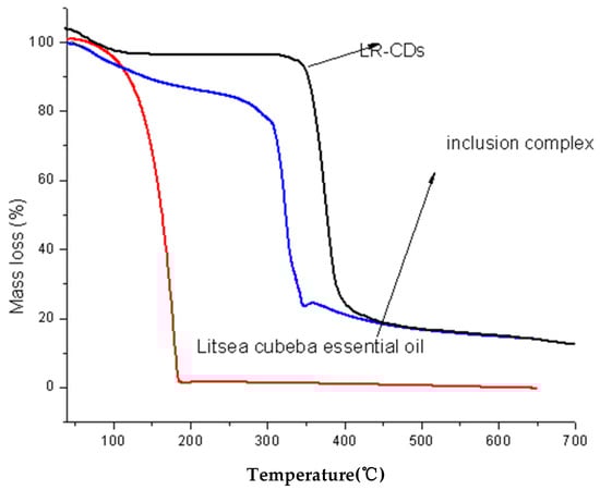 Thermogravimetric analysis diagram of the LRCD, LCEO, and inclusion complex.