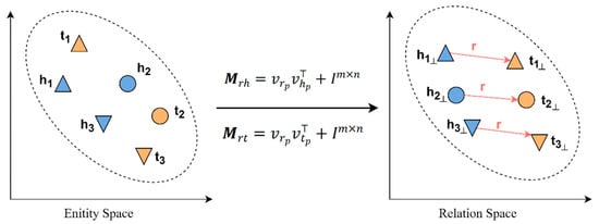 The head entity and tail entity are mapped to the relation space by constructing the projection matrix, as shown in Equation (5).