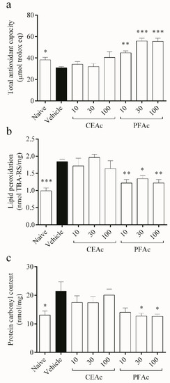 - Reznick, A.Z.; Packer, L. Oxidative damage to proteins: Spectrophotometric method for carbonyl assay. Methods Enzymol. 1994, 233, 357–363. [Google Scholar]