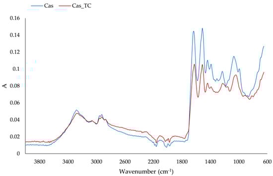 IR spectra of protein matrix (Cas) and formulated aggregate (Cas_TC).