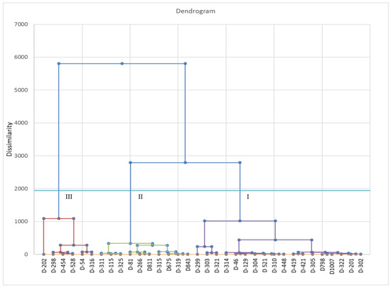 - Rohlf, F.J. NTSYS-pc: Numerical Taxonomy and Multivariate Analysis System; Version 2.0; State University of New York: Stony Brook, NY, USA, 1998. [Google Scholar]