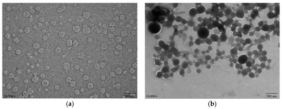The TEM images of protein/PCs: WPI/PCs (a); WPI-Lac/PCs (b).