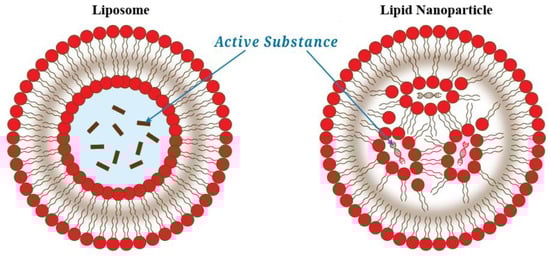 The difference between liposomes and lipid nanoparticles for encapsulation. Redrawn from [137].
