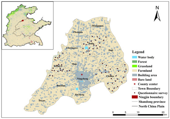 - The farmers in the area are predominantly small-scale subsistence farmers [47,48]. The average annual population from 2000 to 2020 was 469,700, among which the agricultural population was 396,700, accounting for 84.46% of the total population [40]. In 2020, the per capita cultivated land in Ningjin County was 0.13 ha, which is higher than the national level (0.09 ha) and that of Shandong Province (0.06 ha) [49]. The main production mode is the family as the production unit.