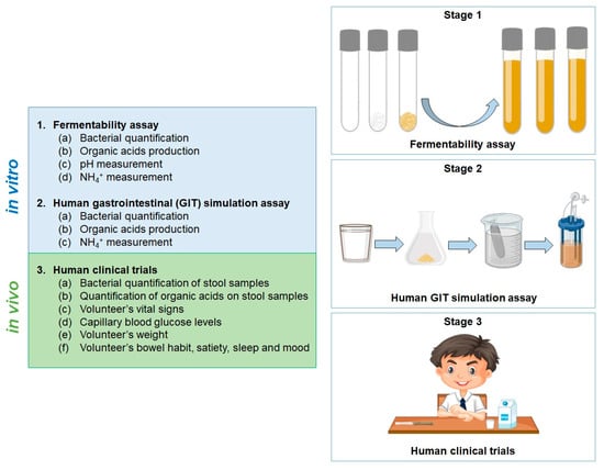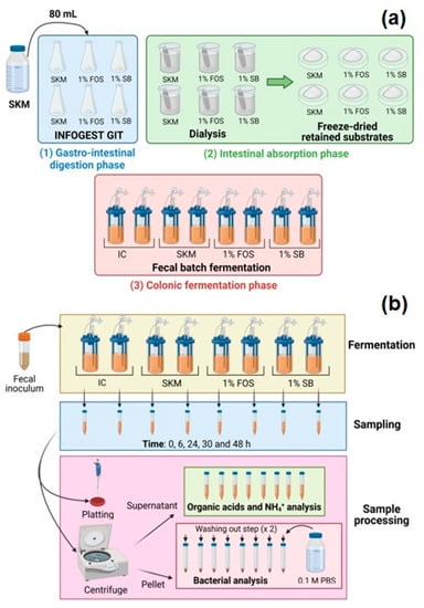 To fully understand the fermentability assay, a schematic protocol is shown below as an example (Figure 3); nevertheless, other experimental designs can be used [84,92,93,94].