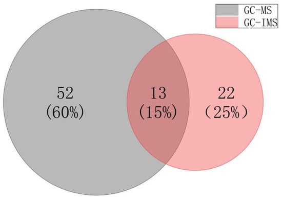 The Wayne diagram of the number of aroma substances determined by GC-MS and GC-IMS.