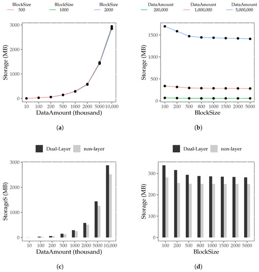 - : storage of the simulation system on dataset with index type . Once the data set was imported into the simulation system, we calculated the block storage occupancy by obtaining the storage size of the block files in the simulation system.