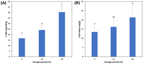 3.1. Changes in TVB-N and Acid Values of Mackerel According to the Freshness