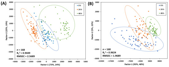 3.3. PLS Score Plots for Classification of the Freshness of Mackerel