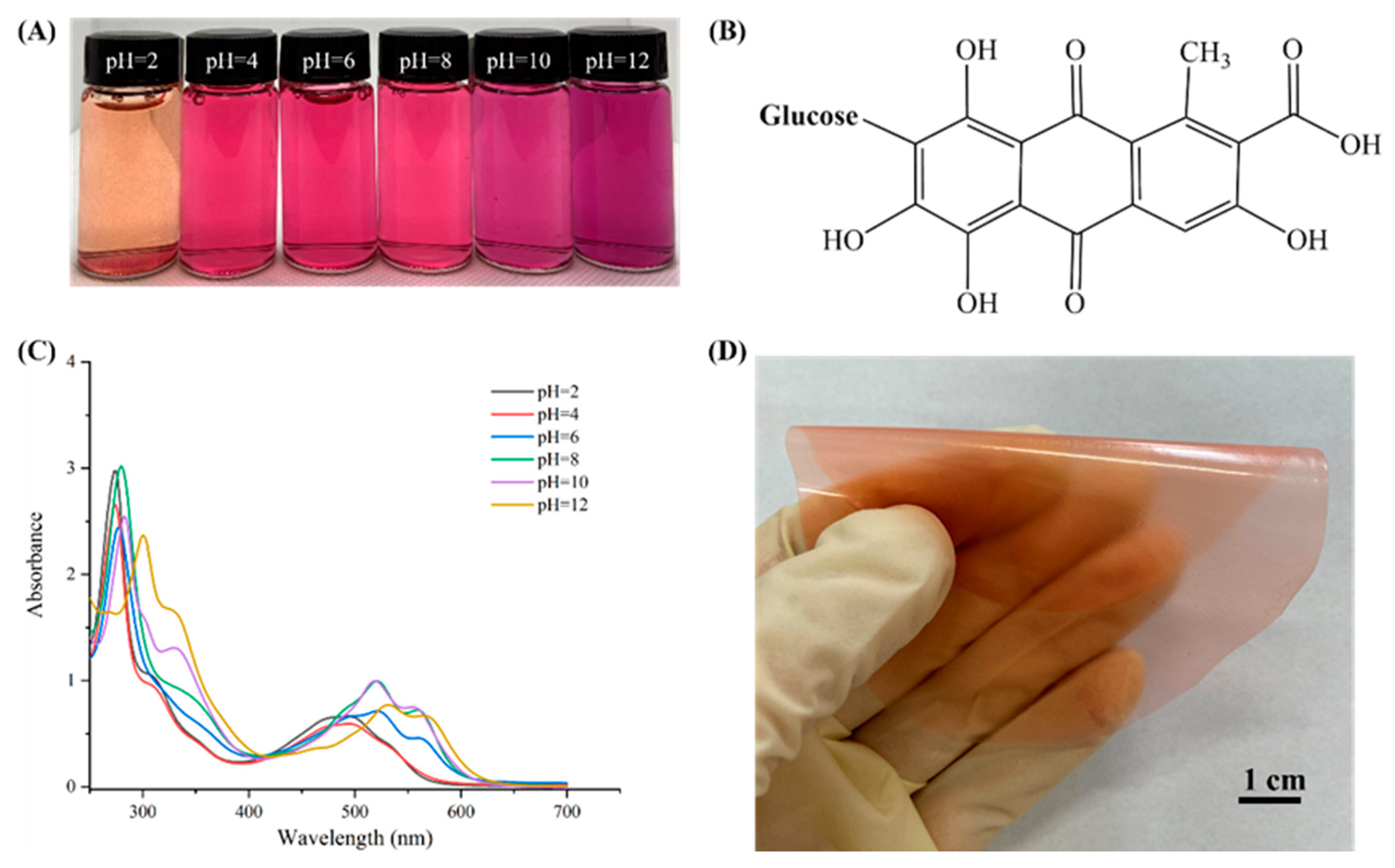 2.4. pH-Sensitive Property and Spectral Characterization of Cochineal Solutions