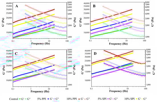 | Sample | Time (Day) | Rheological Properties during Frequency Sweep a | |||||