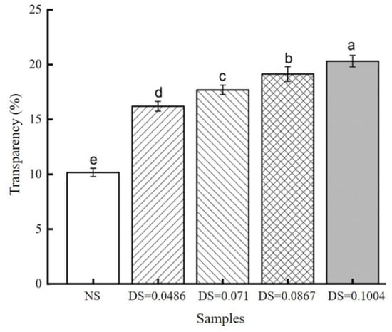 | DS = 0.0486 | 15.08 ± 0.63 b | 0.75 ± 0.01 a | 5.38 ± 0.19 a | 10.72 ± 0.23 b | 42.4 ± 2.44 b |
