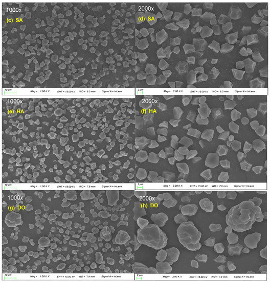 Scanning electron micrographs of starch isolated from the Korean malt and three rice varieties at 1000× (a,c,e,g) and 2000× magnification (b,d,f,h). Malt, Heugho malt; SA, Samgwang rice; HA, Hangaru rice; DO, Dodamssal rice.