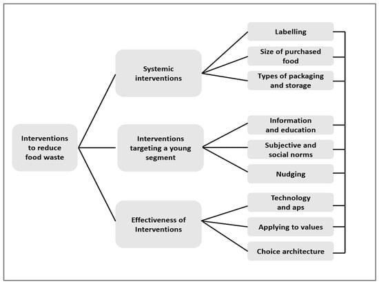 42], there is a lack of diversity in studies on the effects of food waste interventions suggested in the literature. Interventions can be divided into: (1) technology that helps people plan, share, and maintain an overview of stock, (2) packaging and storing solutions that extend shelf life, and (3) information and awareness campaigns [