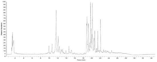 UHPLC Q orbitrap total ion current chromatogram of D. winteri dried fruit (pepper) hydroethanolic extract.