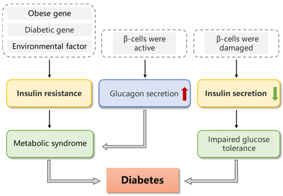| Type II diabetes mellitus (T2DM) | (1) A genetic defect in insulin resistance caused by abnormal gene regulation. (2) A genetic defect in beta cells that prevents them from properly secreting insulin. Epigenetic environmental factors, such as obesity, aging, stress, dietary habits, glucose toxicity and lipotoxicity, oxidative stress and endoplasmic reticulum stress, are also closely associated with T2DM. |