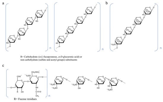 - Kang, J.; Jia, X.; Wang, N.; Xiao, M.; Song, S.; Wu, S.; Li, Z.; Wang, S.; Cui, S.W.; Guo, Q. Insights into the structure-bioactivity relationships of marine sulfated polysaccharides: A review. Food Hydrocoll. 2022, 123, 107049. [Google Scholar] [CrossRef]