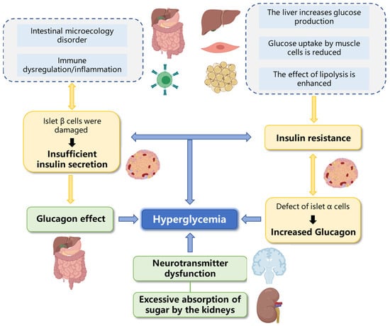 | Type I diabetes mellitus (T1DM) | Normal β-cells and antibodies in the body are produced during an immune reaction, causing β-cells to be destroyed, which causes the body to not to be able to secrete the insulin, which, in turn, causes an absolute lack of insulin, leading to abnormal metabolic disease. |