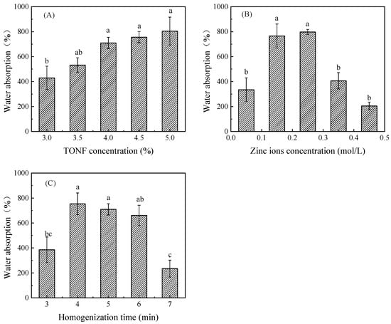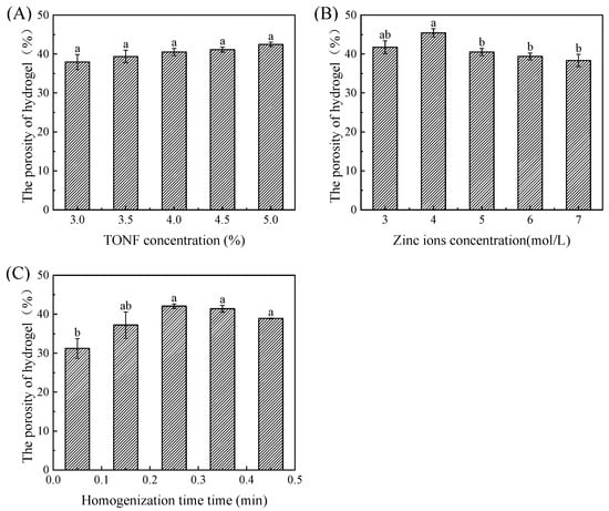 2.2.1. Effect of TOCNF Concentration on Water Absorption and Porosity of Hydrogels