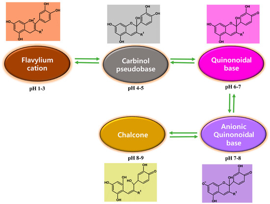 - Roy, S.; Rhim, J.W. Anthocyanin food colorant and its application in pH-responsive color change indicator films. Crit. Rev. Food Sci. 2021, 61, 2297–2325. [Google Scholar] [CrossRef] [PubMed]