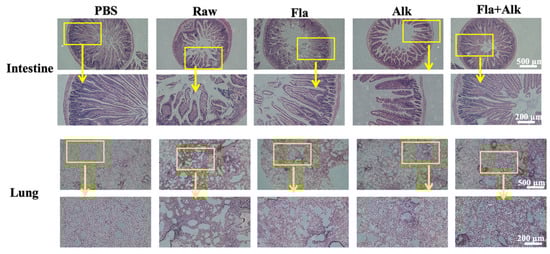 Effects of peanut treated with Fla and Alk on intestine and lung.