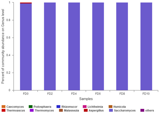 3.2. Dynamic Change in Fungal Community during Tartary Buckwheat Huangjiu Fermentation
