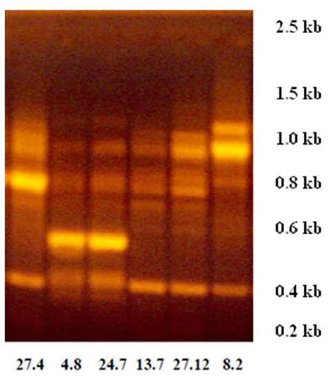 2.1.1. Genetic Profiles by Random Amplification of Polymorphic DNA (RAPD)