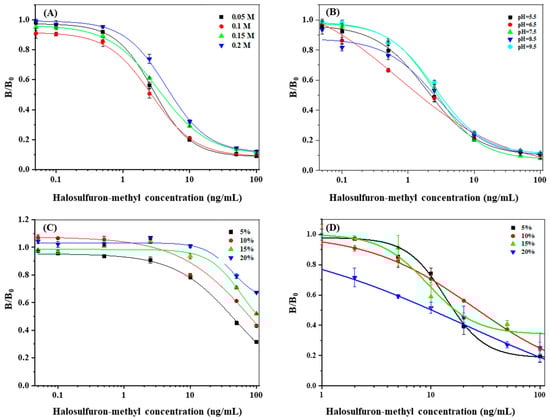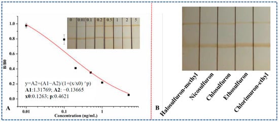 APA StyleYing, Y., Cui, X., Li, H., Pan, L., Luo, T., Cao, Z., & Wang, J. (2023). Development of Magnetic Lateral Flow and Direct Competitive Immunoassays for Sensitive and Specific Detection of Halosulfuron-Methyl Using a Novel Hapten and Monoclonal Antibody. Foods, 12(14), 2764. https://doi.org/10.3390/foods12142764