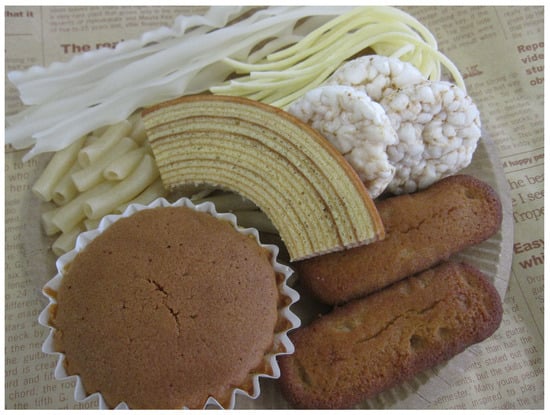 At present, copious scientific journals, including Foods, have various Special Issues featuring gluten-free products, as well as the pros and cons of a gluten-free lifestyle. Research on the development of gluten-free foods will surely expand in the future. While wheat products currently provide 20% of calories and protein for people worldwide [2], it is without a doubt that the ongoing diversification of food production will gradually result in the replacement of wheat with rice, soybeans, hemp, and others. While several gluten-free products are already on the market (Figure 2), they remain to be within an evolutionary stage. The effective use of sustainable plants with a reduced cultivation cost/ecological burden, as well as waste products such as oil cakes, will proceed to abide by the Sustainable Development Goals. Besides, an increasing risk of disasters urges researchers to produce long-life and portable (lightweight) gluten-free foods with high nutritive value to be easily distributed within safe shelters. The Editor closes this Special Issue with great anticipation for the further development of high-quality gluten-free foods which are able to win the hearts of all consumers.