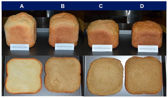Bread volume has been related to bread shelf life [59] and chewiness [38]. In response, strategies such as changing the presentation of the ingredients, for example, whole seeds vs. flour [29], or raw vs. popped grains [24], could be considered to minimize the impact of the treatments on bread volume.