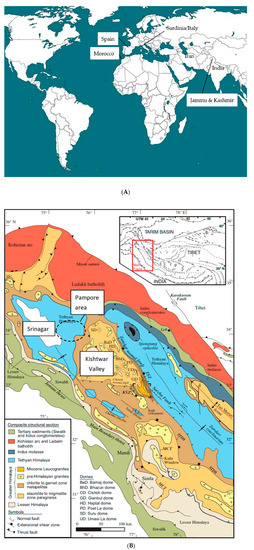 - Horton, F.; Lee, J.; Hacker, B.; Bowman-Kamaha’o, M.; Cosca, M. Himalayan gneiss dome formation in the middle crust and exhumation by normal faulting: New geochronology of Gianbul dome, northwestern India. Geol. Soc. Am. Bull. 2014, 127, 162–180. [Google Scholar] [CrossRef]