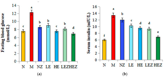 3.5. Effects of EP and Its Zn Complex on Glucose and Insulin Resistance