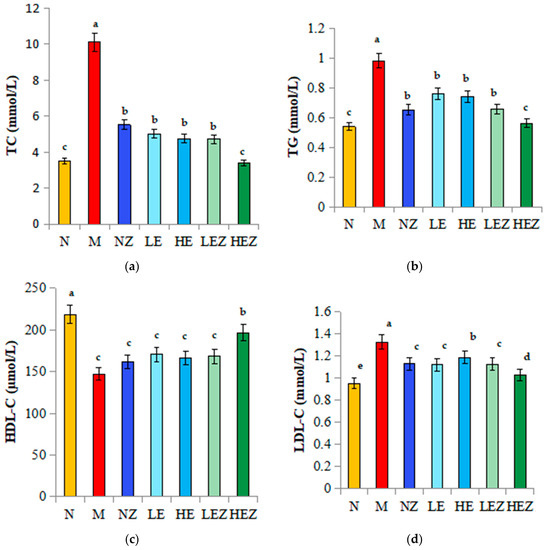 3.6. Effect of EP and Its Zn Complex on Lipid-Related Indexes in Mice