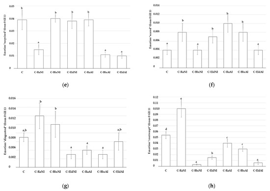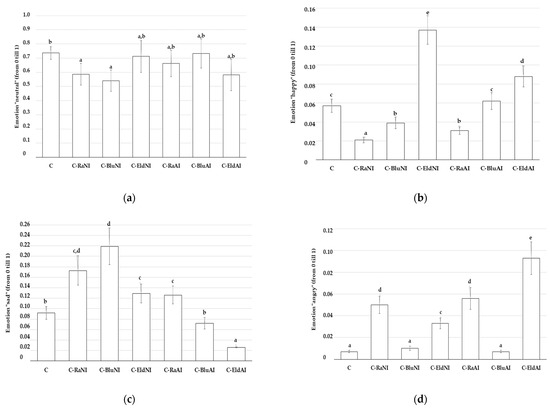 In parallel, U-CC samples were tested by applying FaceReader 6.0 software (Noldus Information Technology, Wageningen, The Netherlands), scaling eight emotion patterns (neutral, happy, sad, angry, surprised, scared, disgusted and contempt) [39]. All procedures are described in detail in Supplementary File S5.