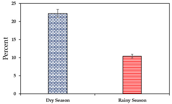 Figure 2. Prevalence of Listeria monocytogenes in meat products according to the season (dry or rainy).