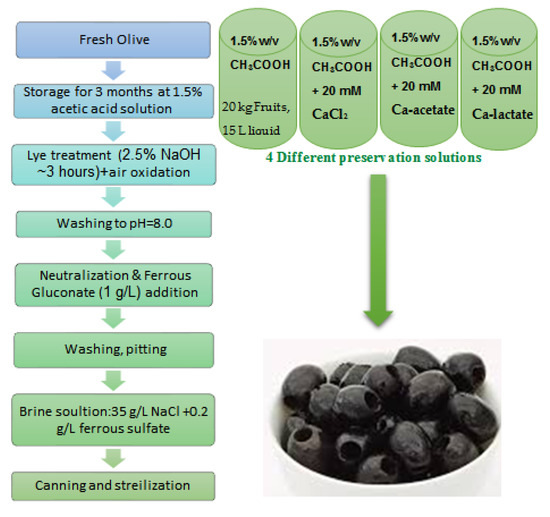 - Fernández, A.G.; Adams, M.R.; Fernandez-Diez, M.J. Table Olives: Production and Processing; Springer Science & Business Media: Berlin/Heidelberg, Germany, 1997. [Google Scholar]