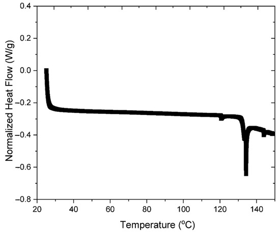 DSC was used to measure the normalized heat flow versus temperature profiles of soy protein in powdered and dissolved form (Figure 3). The literature reports that native soy protein exhibits endothermic peaks around 65 and 90 °C [37]. These peaks are associated with the thermal denaturation of the two major globular protein fractions in soybeans, the 7S fraction (b-conglycinin) and the 11S fraction (glycinin), respectively. These peaks were not observed in the DSC profiles measured in this study, which suggests that the soy proteins had already been denatured. This is probably due to the relatively harsh conditions used to isolate the proteins and converted them into commercial food ingredients, such as solvent extraction, thermal processing, and alkaline solubilization [38,39].