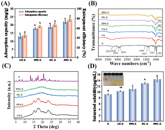 3.2.1. Analysis of the Zeaxanthin Adsorption Capacity and Encapsulation Efficiency