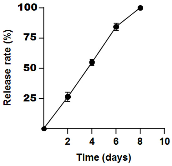 The sustained-release ability of propolis microcapsules is shown in Figure 5. The release amount of propolis was almost linear with time and was totally released after 8 days.